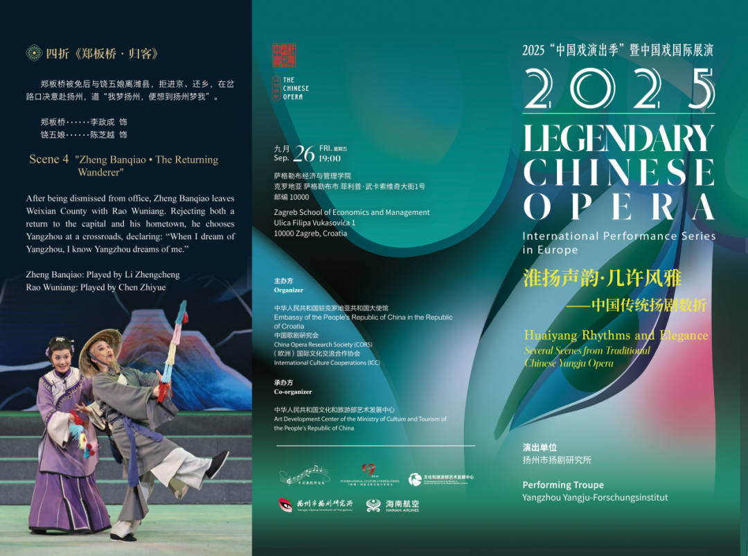 在中国驻克罗地亚大使馆的大力支持下,由中国歌研会及(欧洲)国际文化交流合作协会主办,中国文化部艺术中心承办的2025中国戏剧演出季“传奇中国戏曲”第五个剧团得以亮相克罗地亚,这也是该演出季在欧洲活动最重要的组成部分之一。