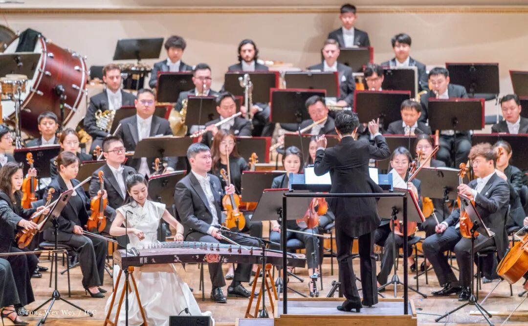 这是继2023年8月中央音乐学院作曲系8位师生的室内乐作品在维也纳成功首秀之后,中央音乐学院作曲家的新作再次在欧洲这一音乐重镇精彩首演。这6首中央音乐学院作曲家新近创作的管弦乐作品,按照演出顺序分别为:贾国平的《观沧海——为琵琶、古筝与管弦乐队而作》(兰维薇演奏琵琶、胡许愿演奏古筝)、常平的《意念2024》、叶小钢的《五色枇杷》、郭文景的古筝协奏曲《春望》(胡许愿演奏古筝)、郝维亚的《开往雪国的列车》、秦文琛的《广陵散》。