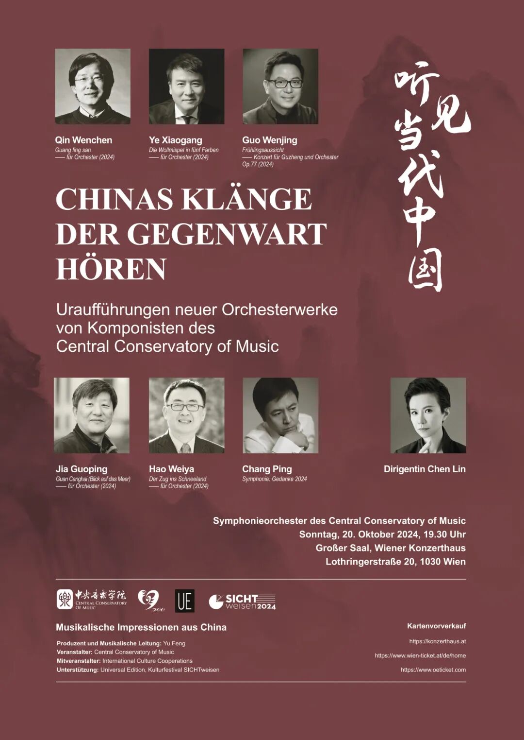 六位作曲家用富于当代感的音乐传达了中国古典诗词的意象、中国文化的情感特质,以及中国代表性作曲家对自然万象的思考和情感经验。音乐会不仅展现了中央音乐学院极其出色的创作和演奏实力,也让维也纳听众感受到了中国非凡而古老的文化在当代音乐中的表达和呈现。
